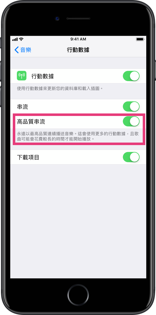 今天我們就來教教大家怎麼開啟用行動數據串流高音質的功能吧!
