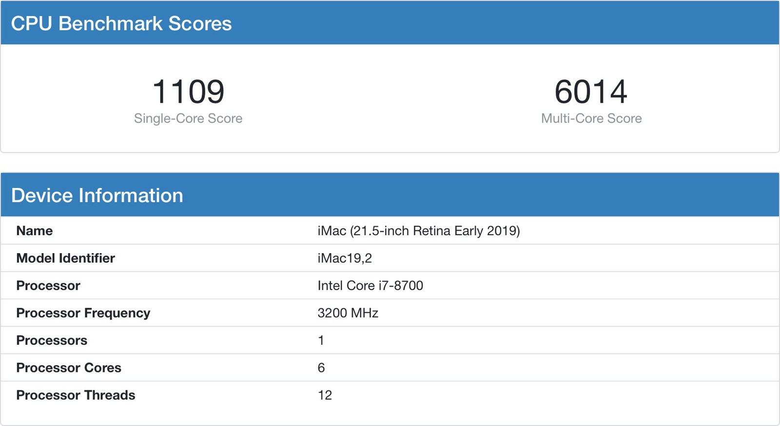 前一代 21.5 吋高階的 iMac 跑分數據為單核分數 1,109,多核分數為 6,014,與 M1 iMac 數據相比,M1 單核性能提高了 56%,多核性能則提高了 24%。
