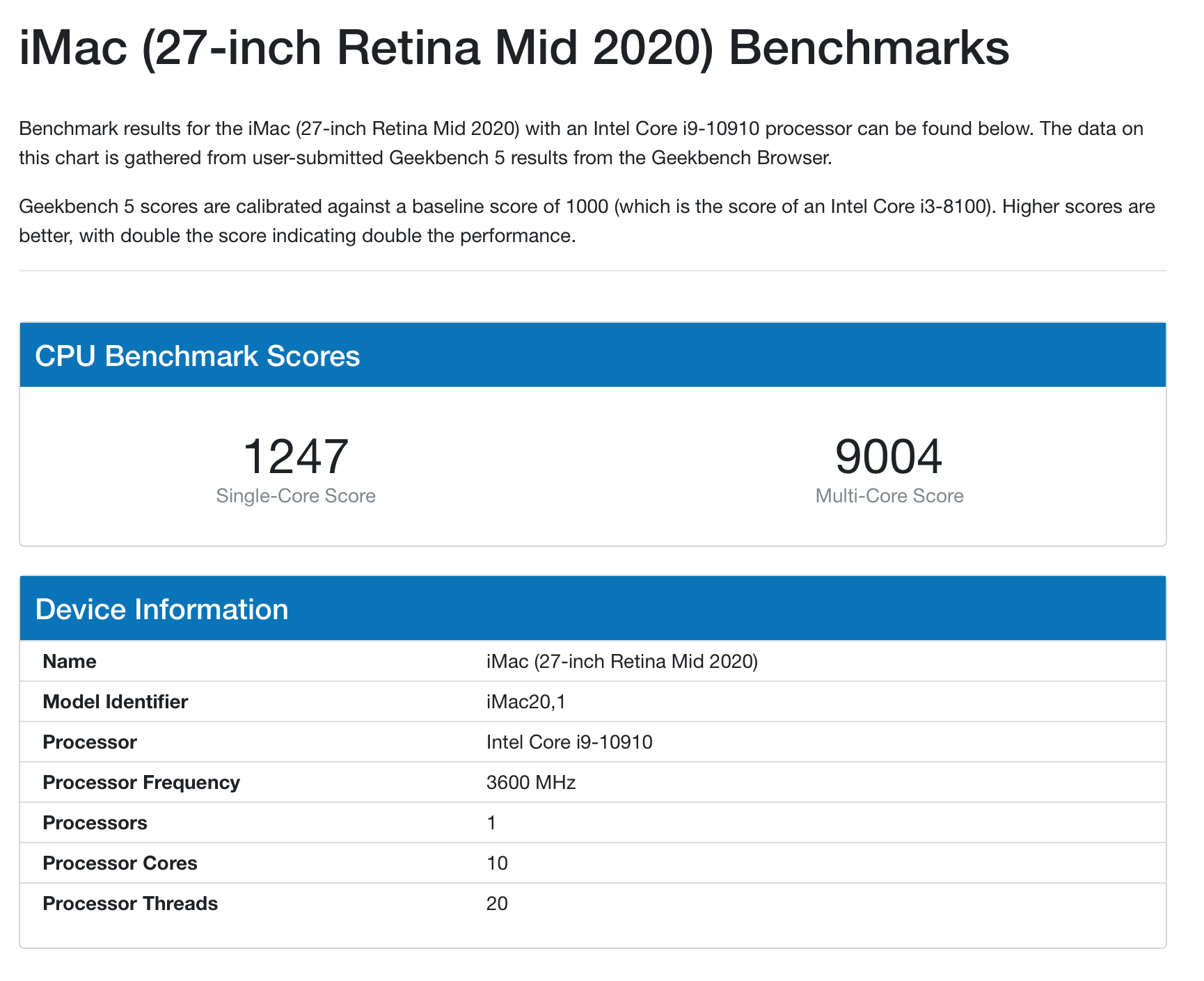 再與目前還在販售的 27 吋 Intel iMac 相比,高階 27 吋 iMac 單核分數為 1,247, 多核分數為 9,004, M1 iMac 跑分結果在單核性能較好,在多核性能方面則顯示落後。