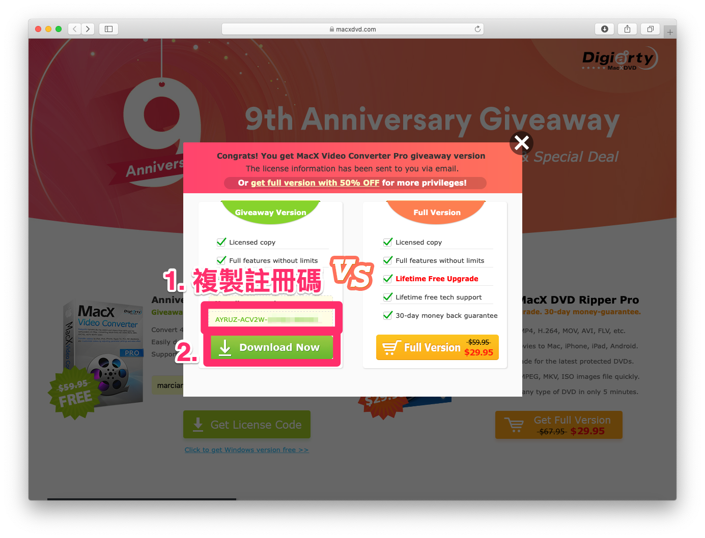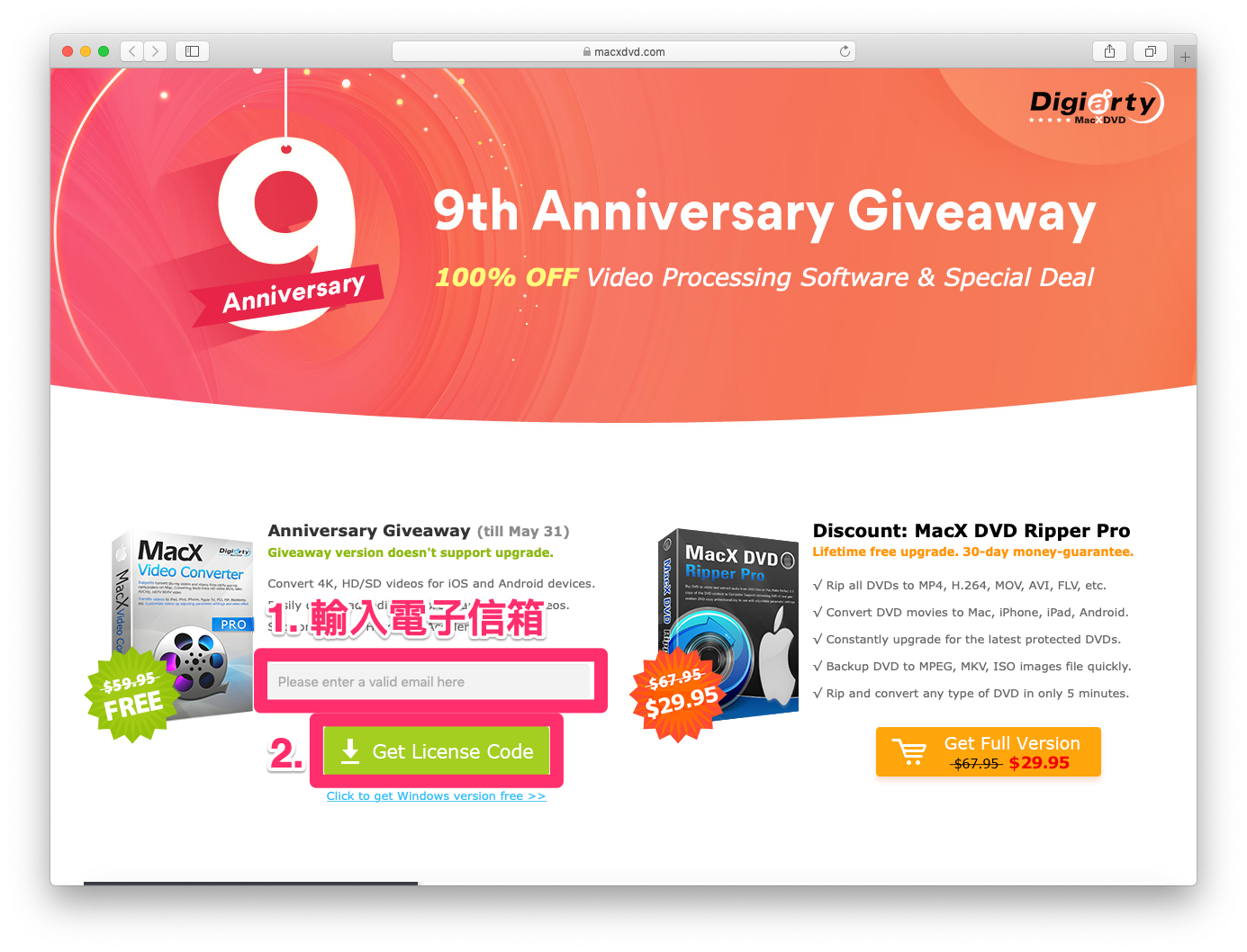 告訴大家一個好消息,MacX Video Converter Pro 正在進行 9 週年慶限時免費活動!只要簡單幾個步驟就能兌換免費註冊碼,輕鬆擁有 4K 影片編輯好幫手!