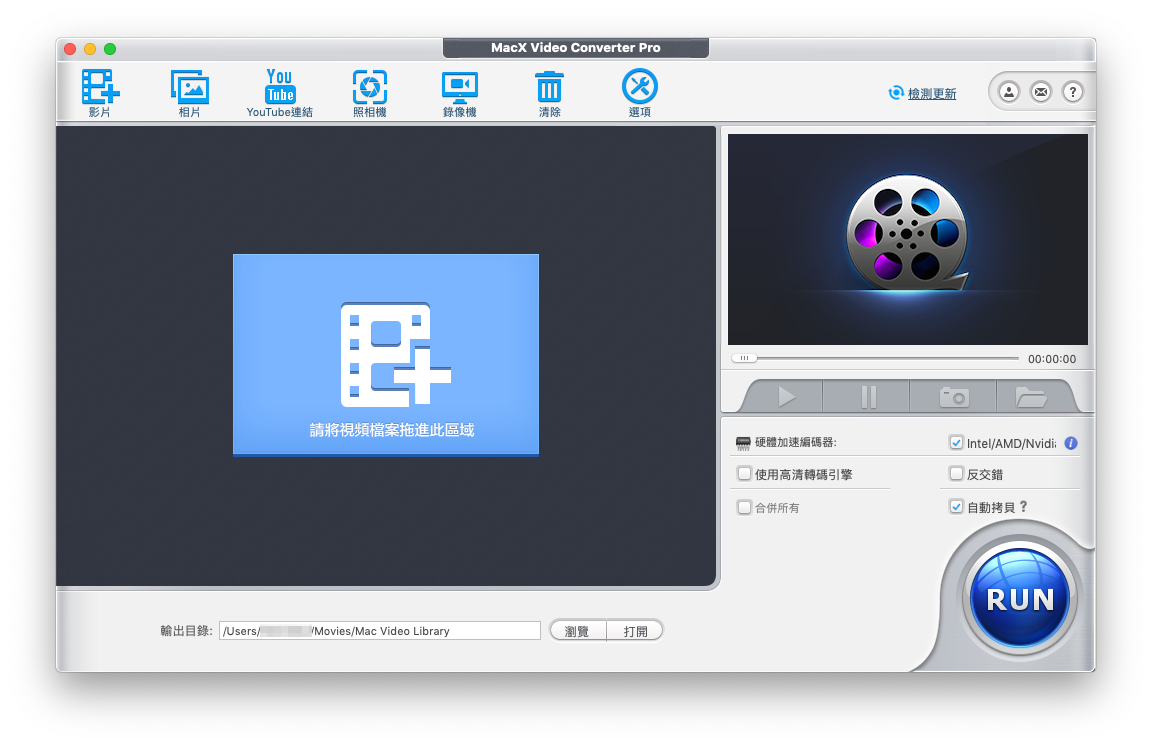 先來體驗 MacX Video Converter Pro 強大的影片轉檔功能吧!使用起來也非常直覺,只要將想要轉檔或編輯的影片直接拖曳到主畫面藍色區域即可。