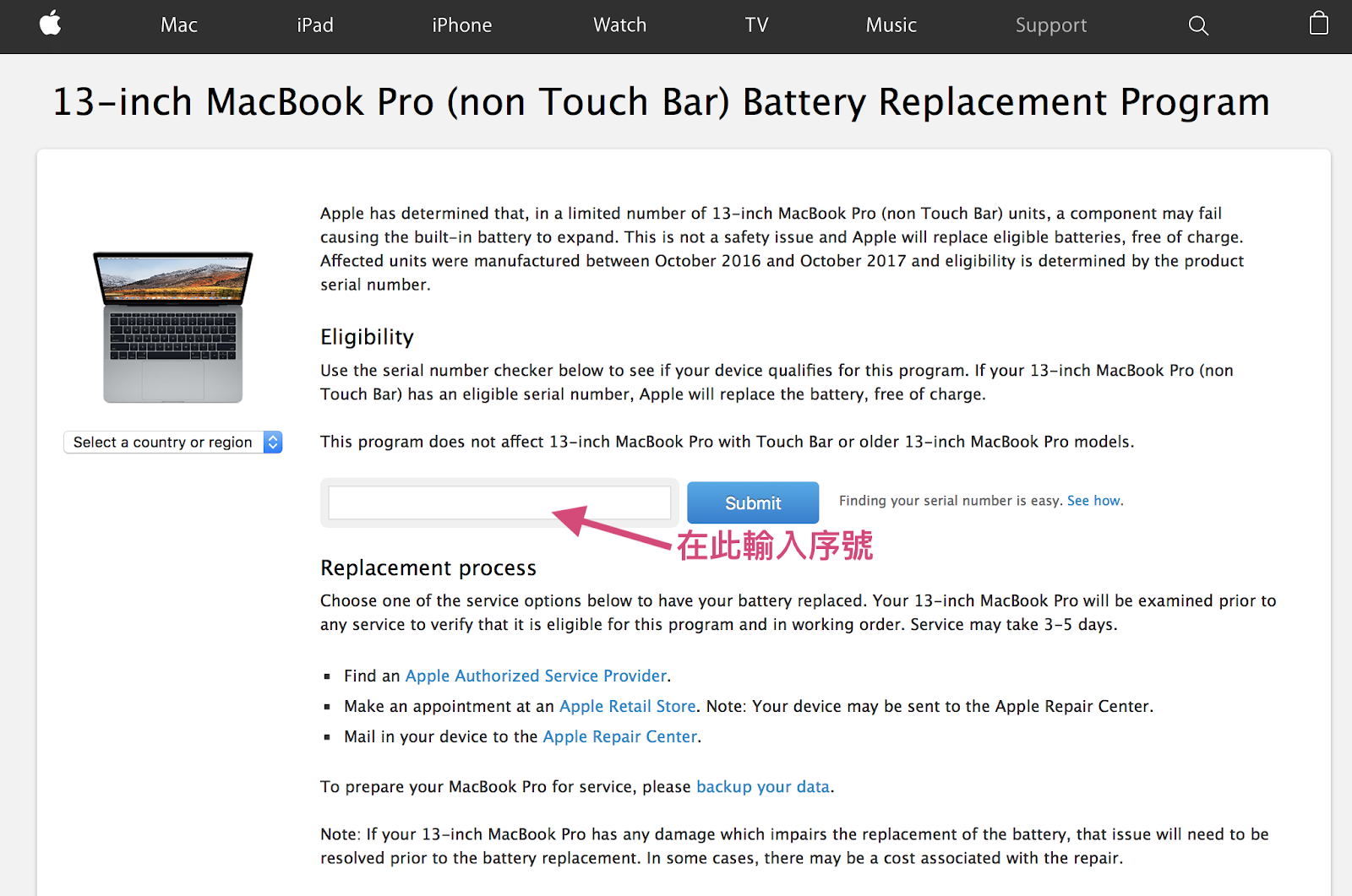 如果你想要確認你使用的電腦是否有在更換範圍中,請至此連結輸入你的電腦序號查詢。