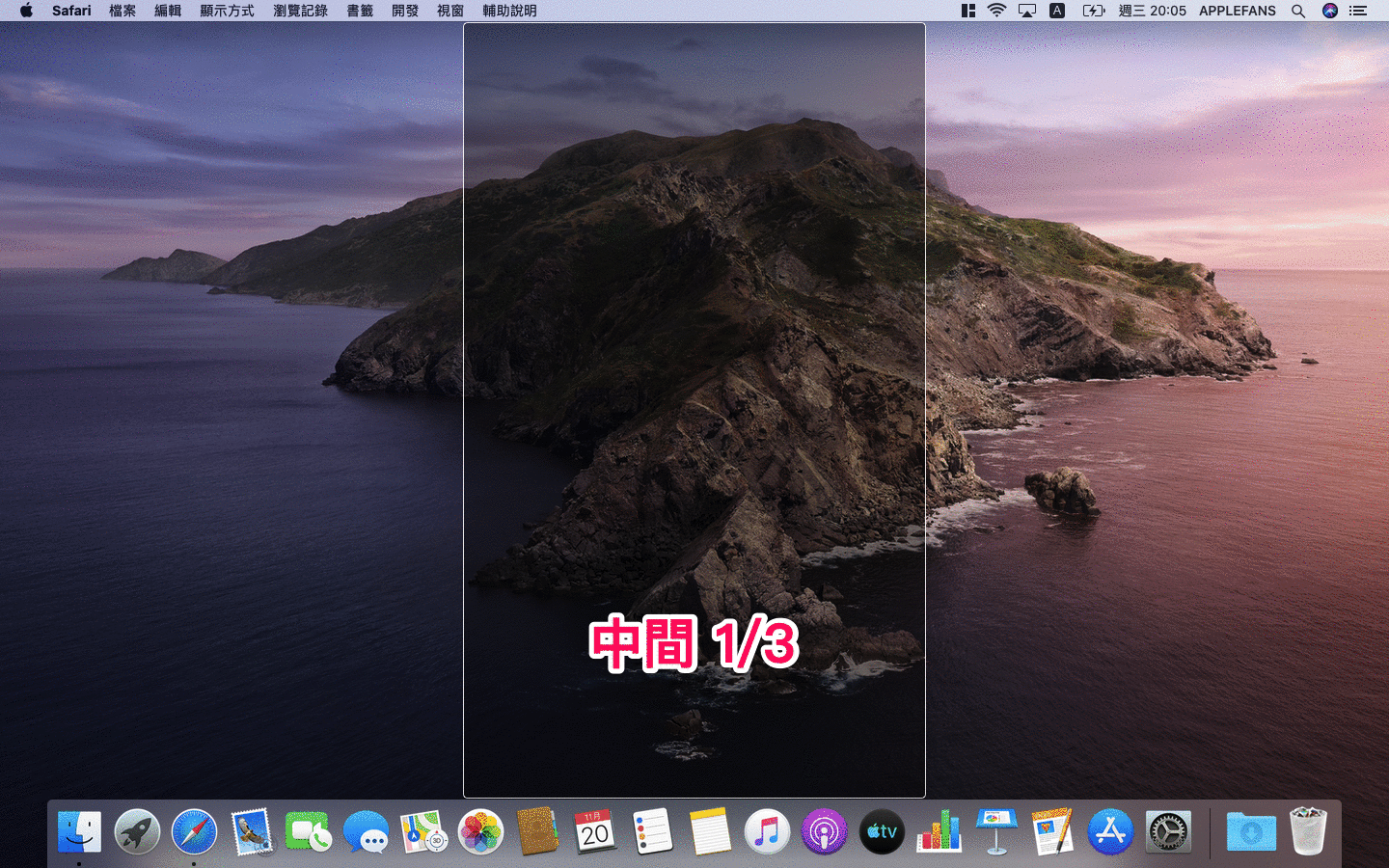 將視窗向最下面拉,就可以讓視窗以「中間 1/3」方式顯示。