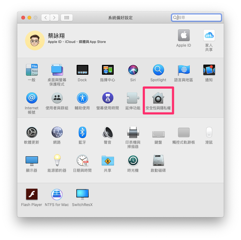 進入「系統偏好設定」的「安全性與隱私權」畫面。