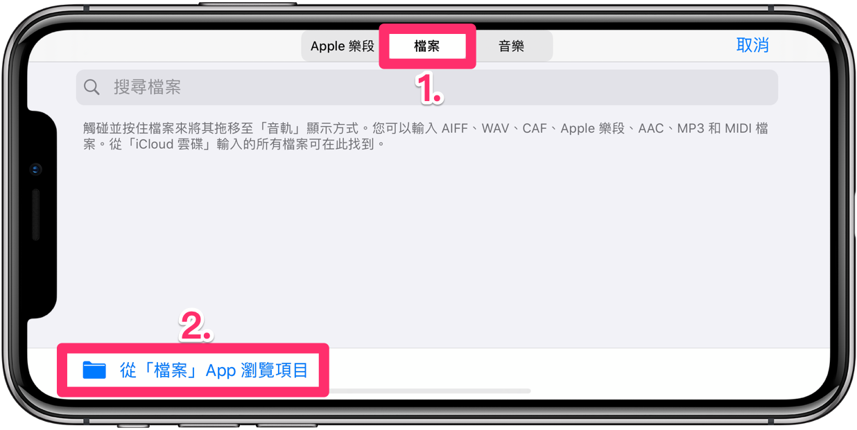 選擇畫面上方中間的【檔案】,再點擊左下方的【從「檔案」App 瀏覽項目】。