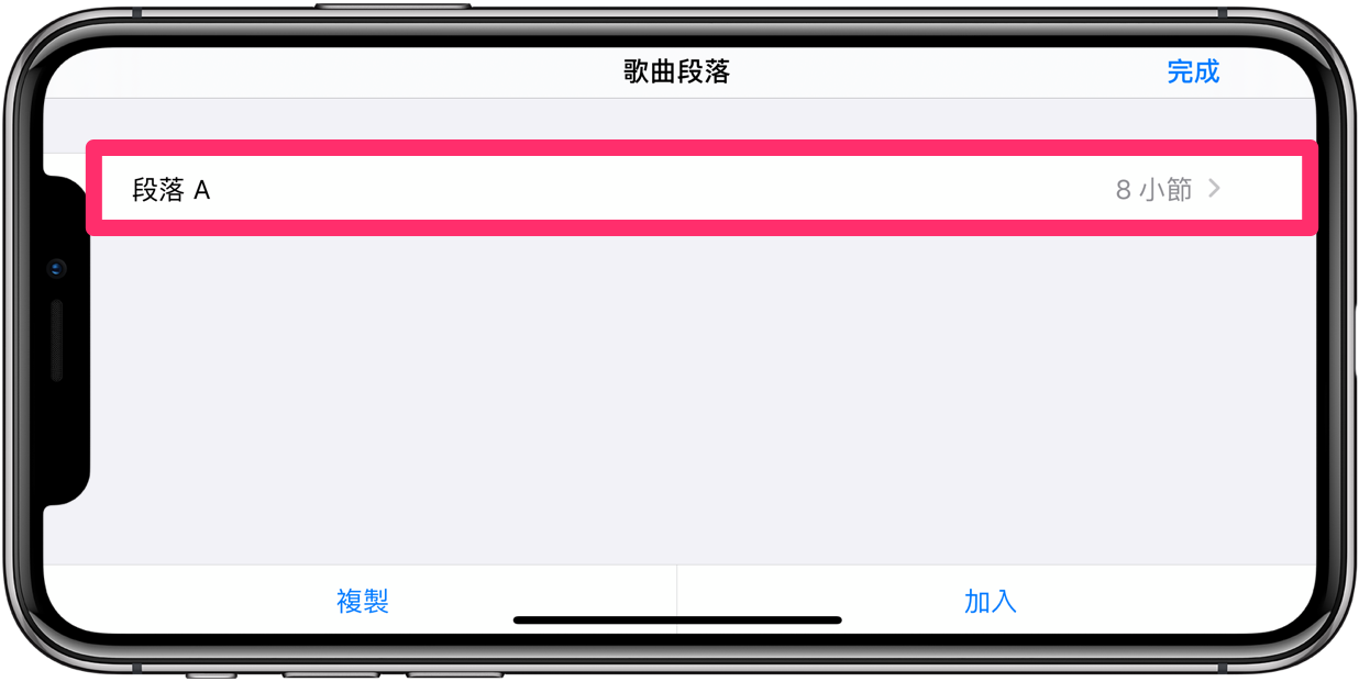 最後再按下畫面右上角的【完成】,就可以將 8 小節的長度增加到想要的小節數了。