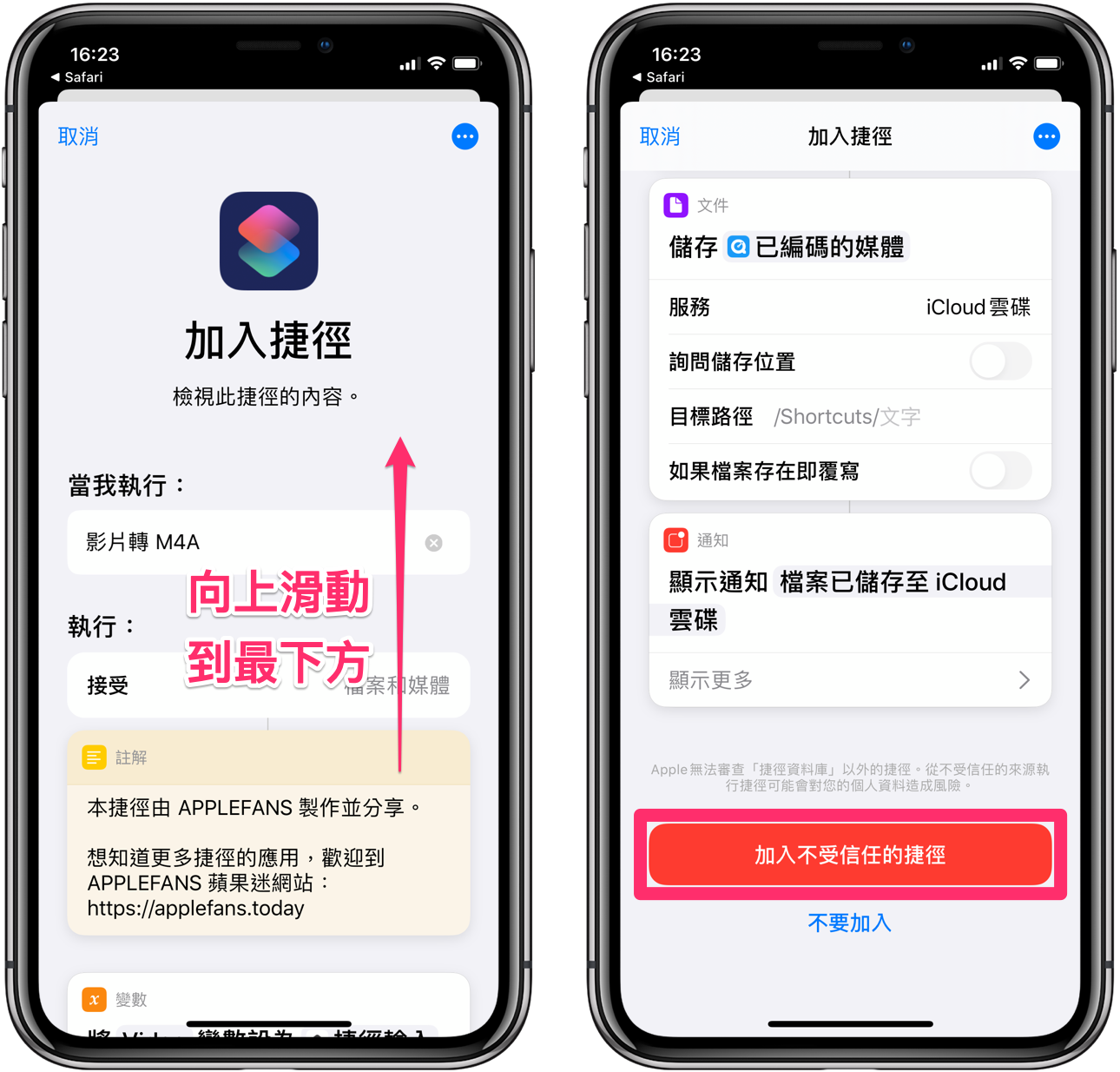 接著放心按下畫面最下方的【加入不受信任的捷徑】按鈕。