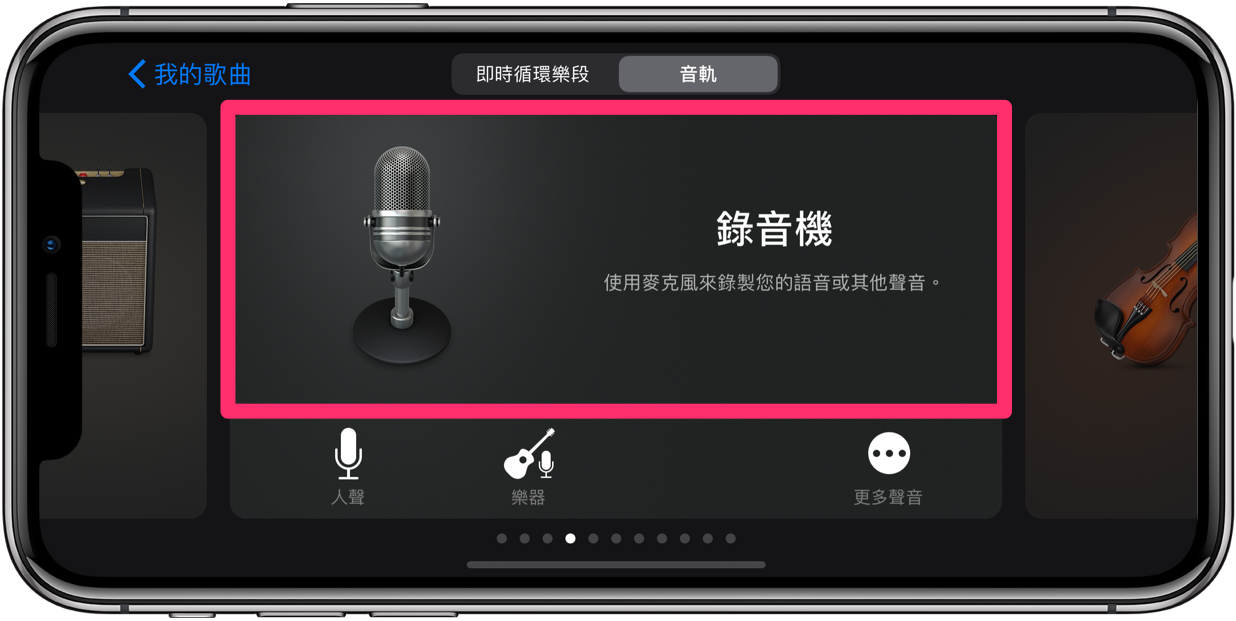 GarageBand 中可以利用很多不同的裝置來輸入音軌,不過我們分享的這個方法要用【錄音機】來製作鈴聲。