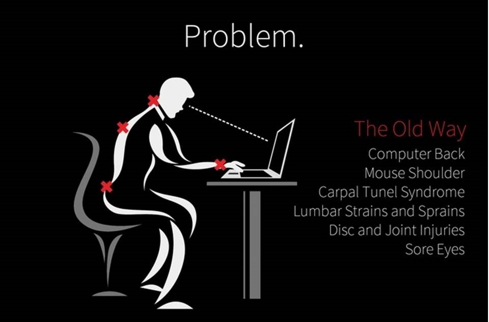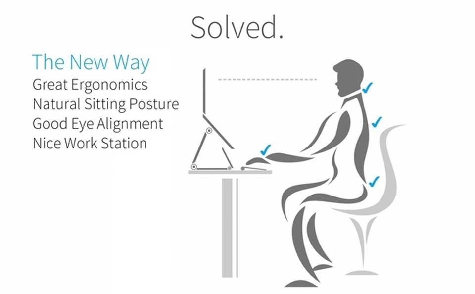 因為當你的鍵盤、滑鼠的高度是剛剛好的時候,螢幕就會太低;但如果你把椅子降低或桌子調高,讓螢幕跟你的視線水平的時候,鍵盤又會太高,用久了一定會聳肩,最後就是不變的肩頸酸痛…