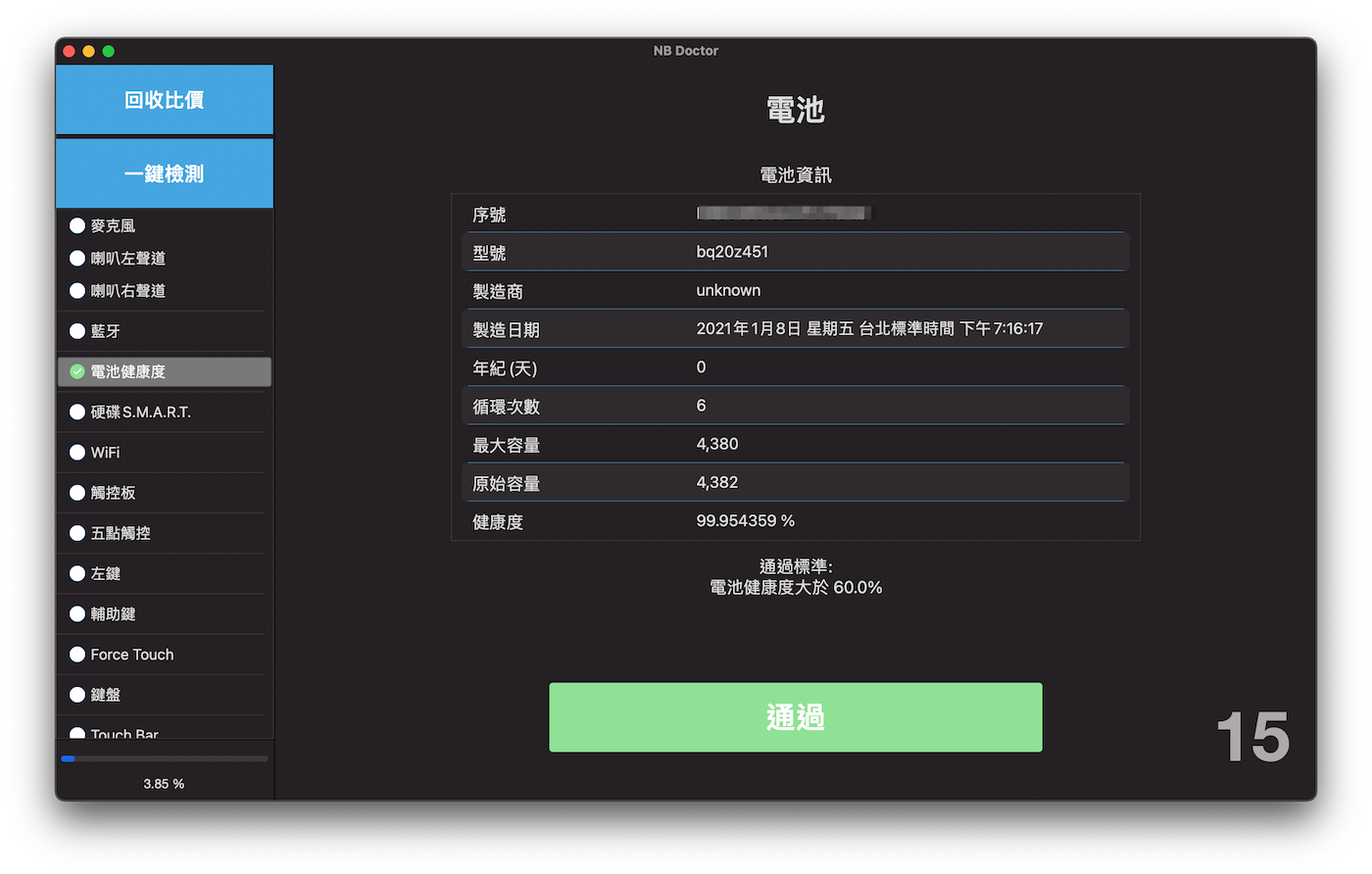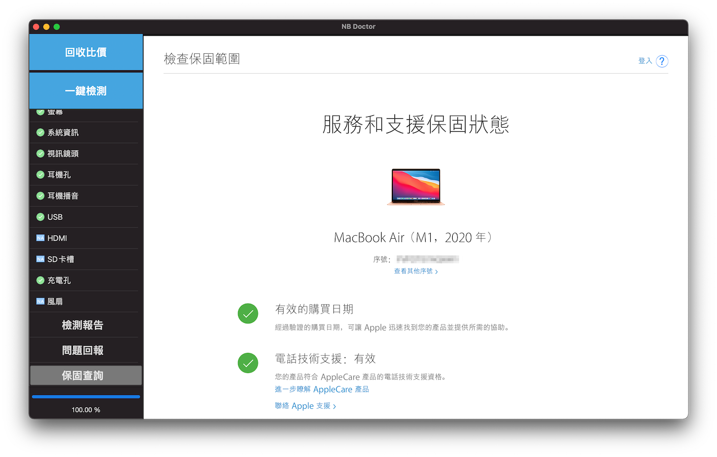 用 “筆電醫生 NB Doctor” 幫 M1 MacBook Air 檢測