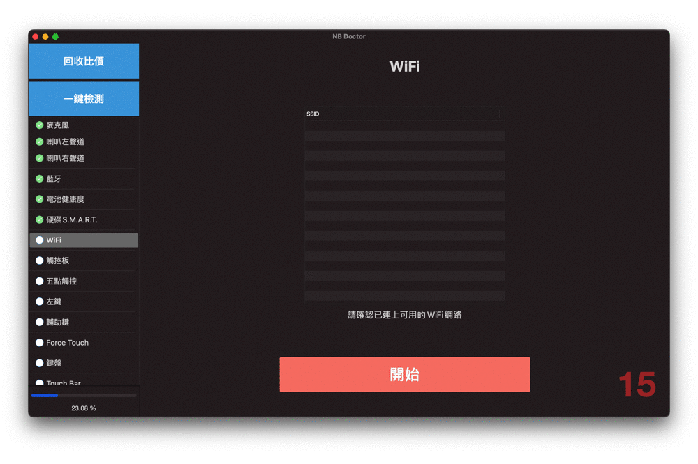 筆電醫生是由大名鼎鼎的「手機醫生」團隊所推出,有著同樣簡單易用的操作介面,每個檢測步驟都付上說明文字或圖片,只要一步一步跟著圖片走即可完成檢測。 首先請下載「筆電醫生」到 MacBook 並開啟。