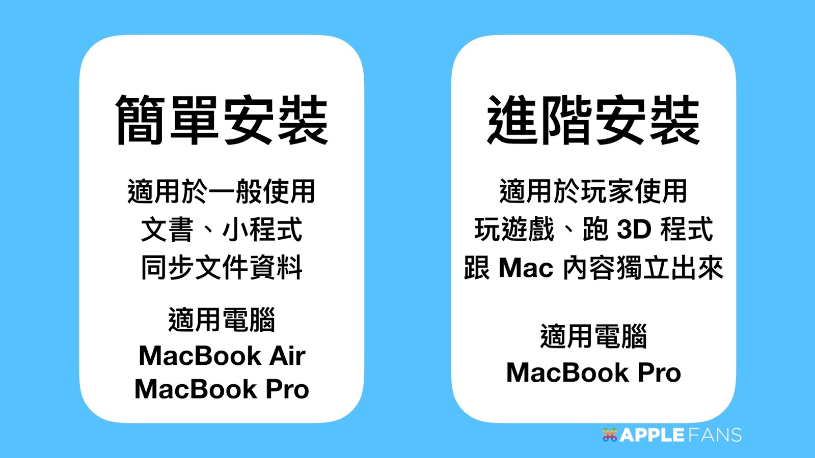 好的,先預告一下,待會的安裝流程會有「簡單安裝說明」以及「進階安裝說明」,沒有想到使用需求那麼多的人就簡單輕鬆安裝就好,但如果會在意 Windows 這一塊效能的朋友,你就必須看一下進階安裝的部分(認真)!