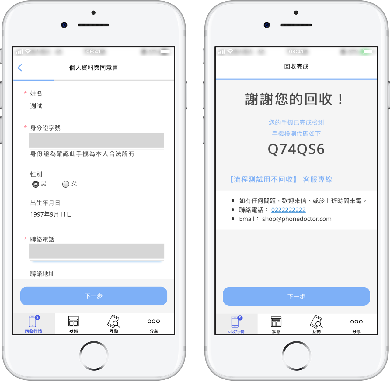 依照 App 指示進行報價確認、讓渡書簽約、身分證件建檔、電話號碼驗證、手機個人資料抹除⋯等流程。