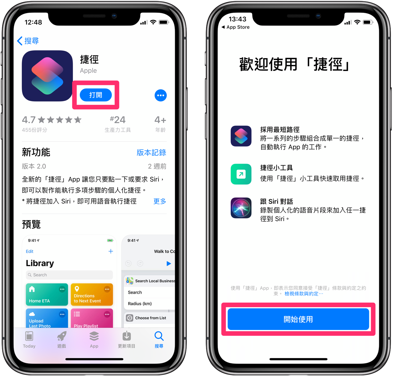 開啟 App Store 搜尋【捷徑】並開始下載(或點我下載)。