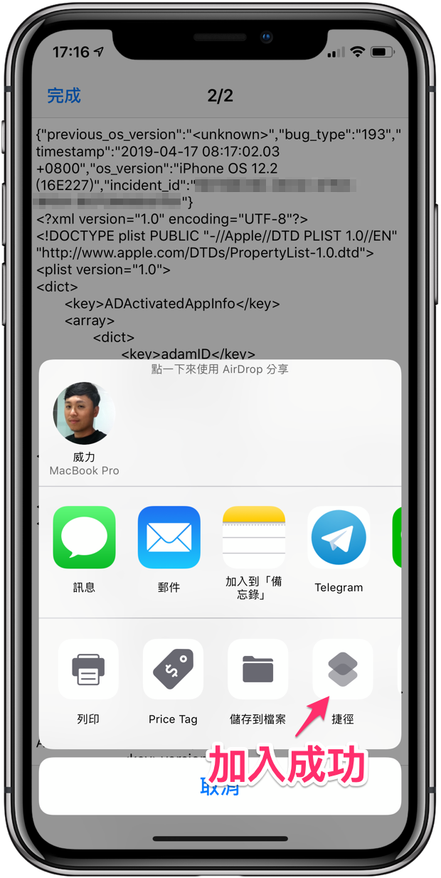※ 只有第一次使用時需要執行此步驟,之後《捷徑》便會常駐在分享選單中。