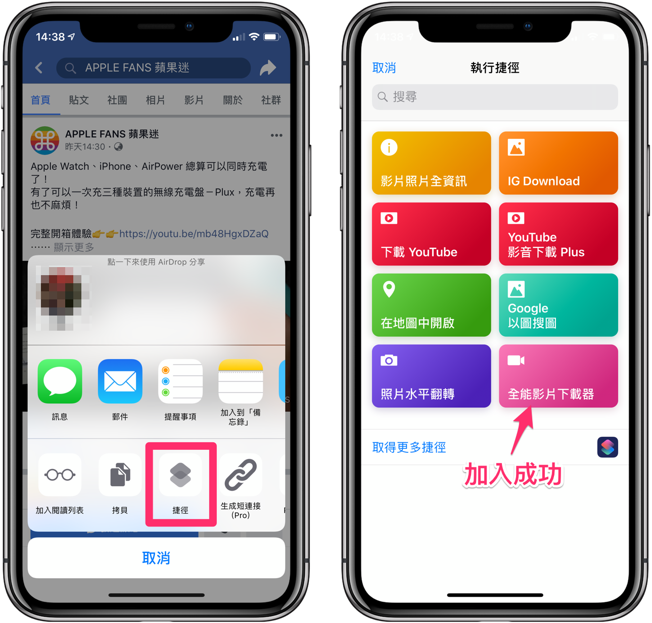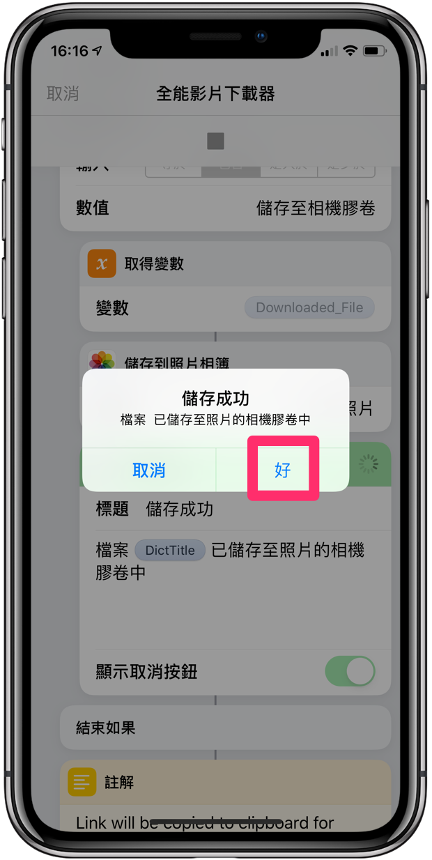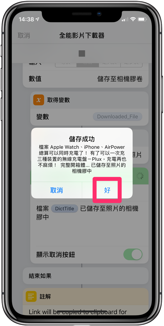 到這邊前置作業就完成啦,接著就是開始體驗「全能影片下載器」捷徑的威力!!!