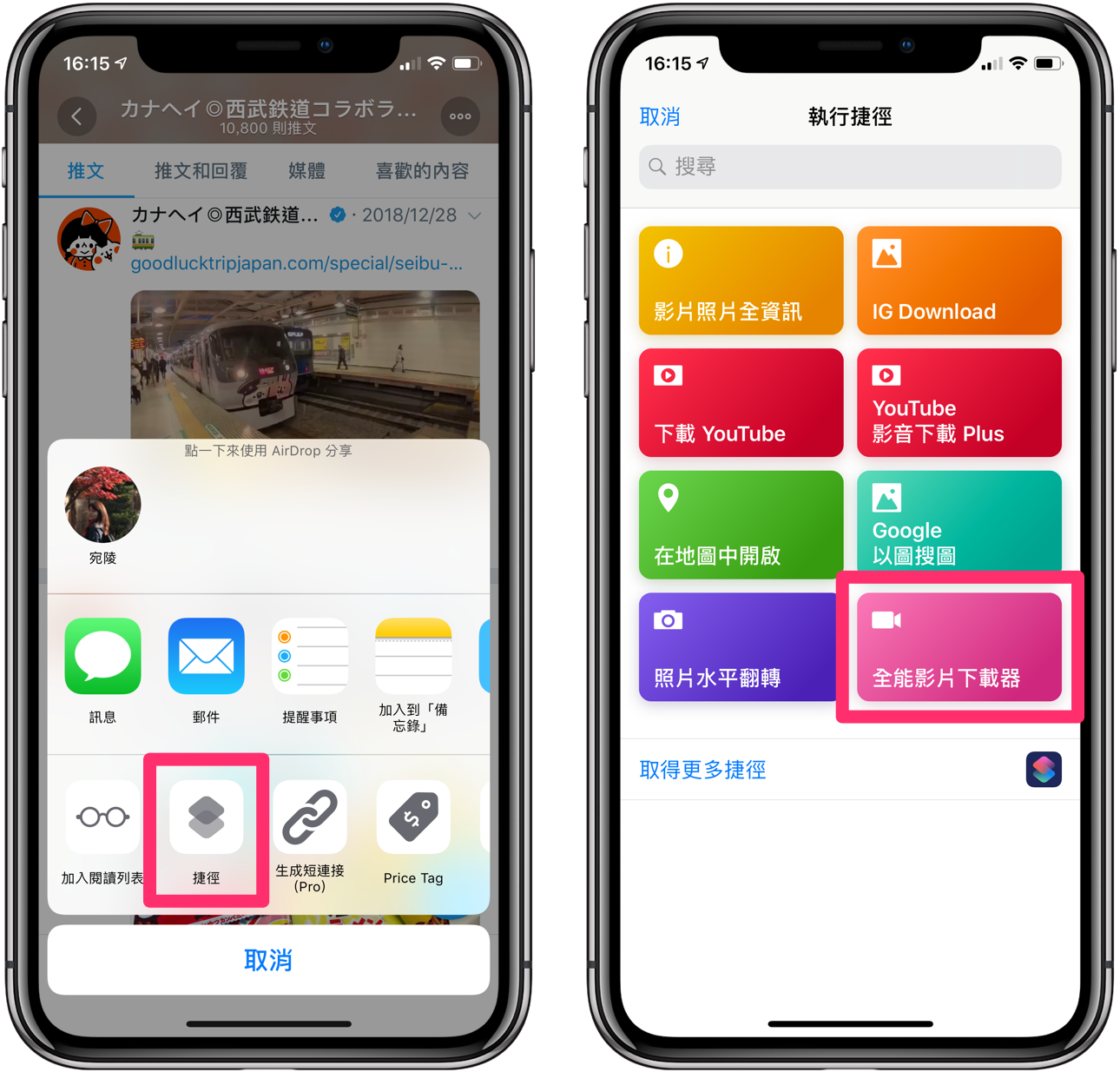 新增《捷徑》App 的「全能影片下載器」捷徑