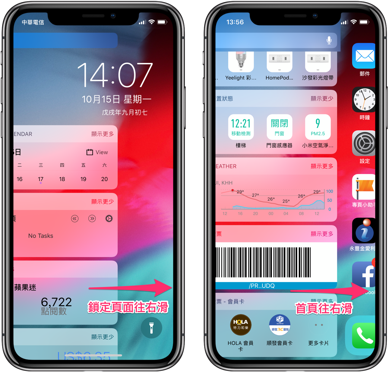 在 iPhone 解鎖頁面直接往右滑動(或是在首頁往右滑動)即可進入小工具頁面。