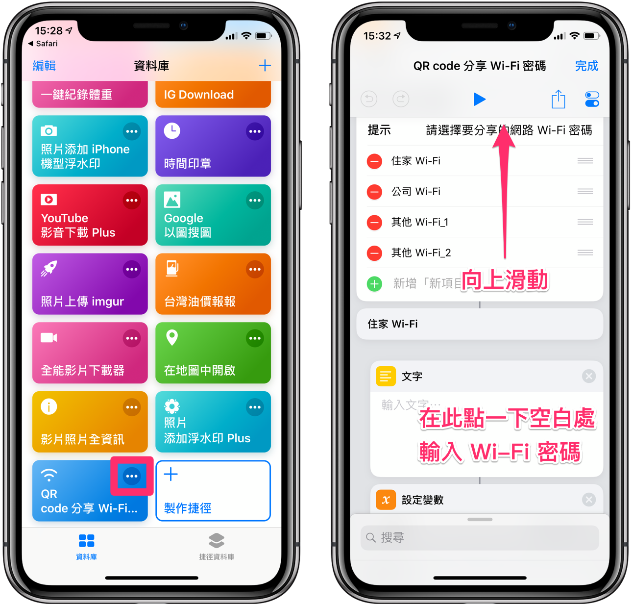 新增《捷徑》的「QR code 分享 Wi-Fi 密碼」捷徑