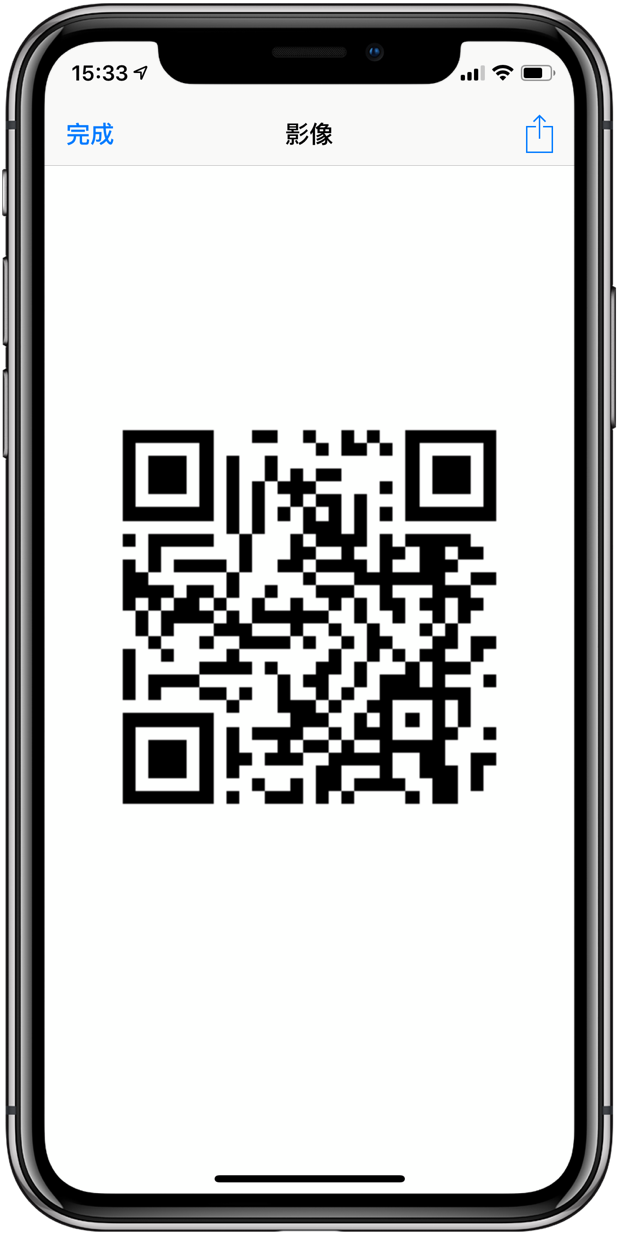 接著就會看到 iPhone 螢幕秀出 Wi-Fi 密碼轉製成的 QR code。