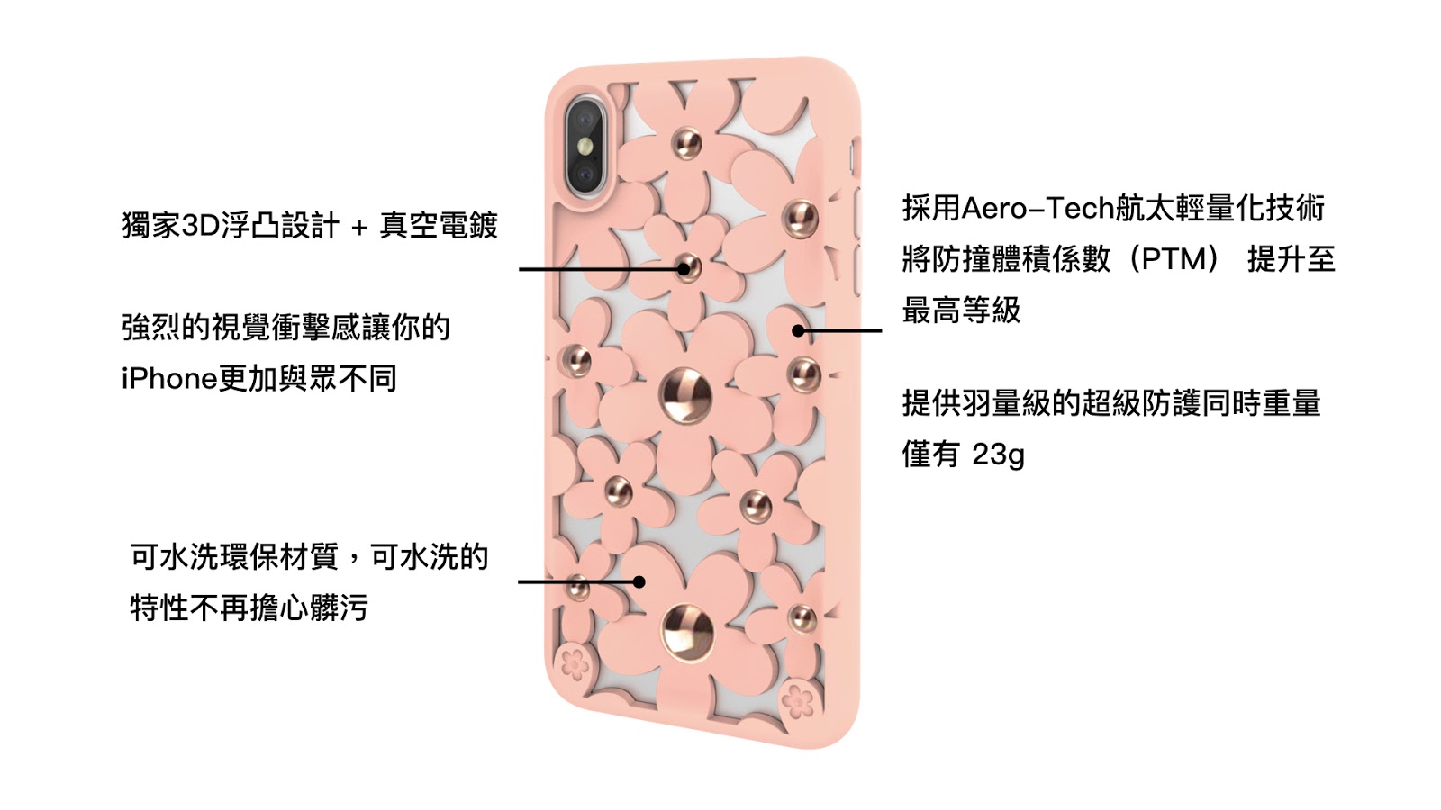 - 獨家 3D 浮凸設計+真空電鍍,強烈的視覺衝擊感讓你的 iPhone 多一份柔美氣質