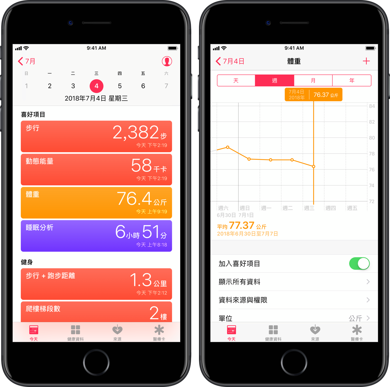 我們能夠將每天的秤重紀錄導入到「健康」當中,一同與你的運動紀錄瀏覽。