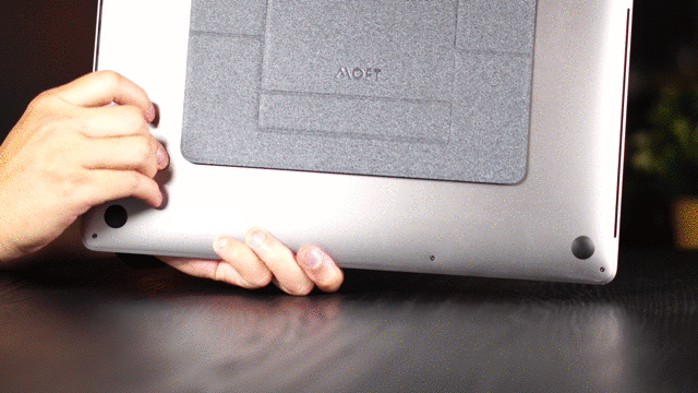 MOFT 主要材質是 PU、玻璃纖維及無痕黏膠所組成,官方號稱最高可以耐重達 8KG。雖然威力沒有實際測試,但看上面敲打鍵盤的 GIF 圖就可以知道,整體來說是非常穩定,所以不需要擔心承重的問題。