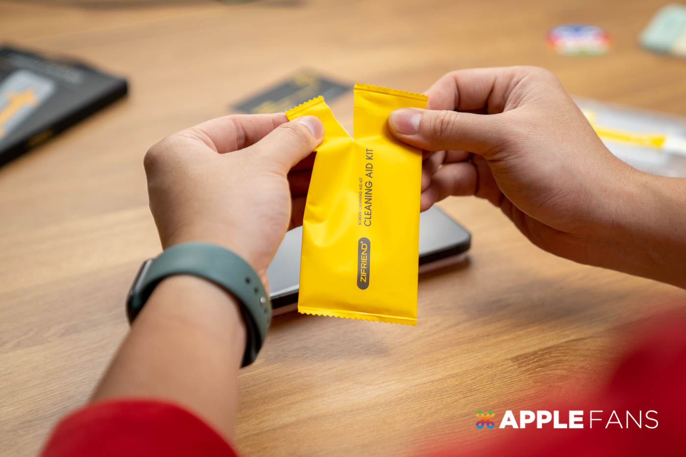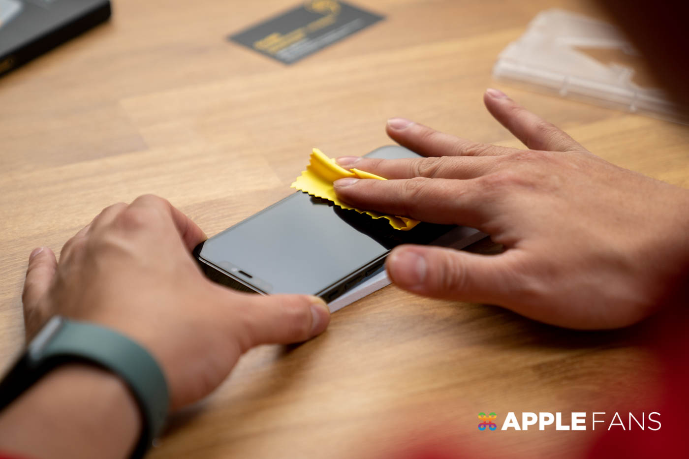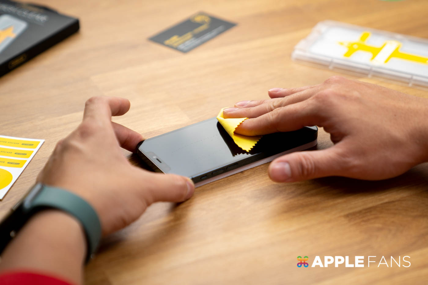 最後將貼好保護貼的 iPhone 用超纖擦拭布清潔乾淨。