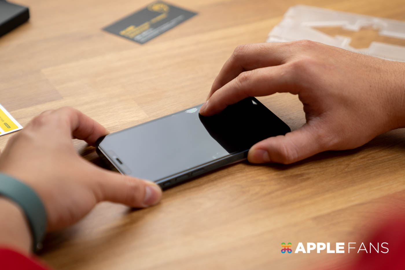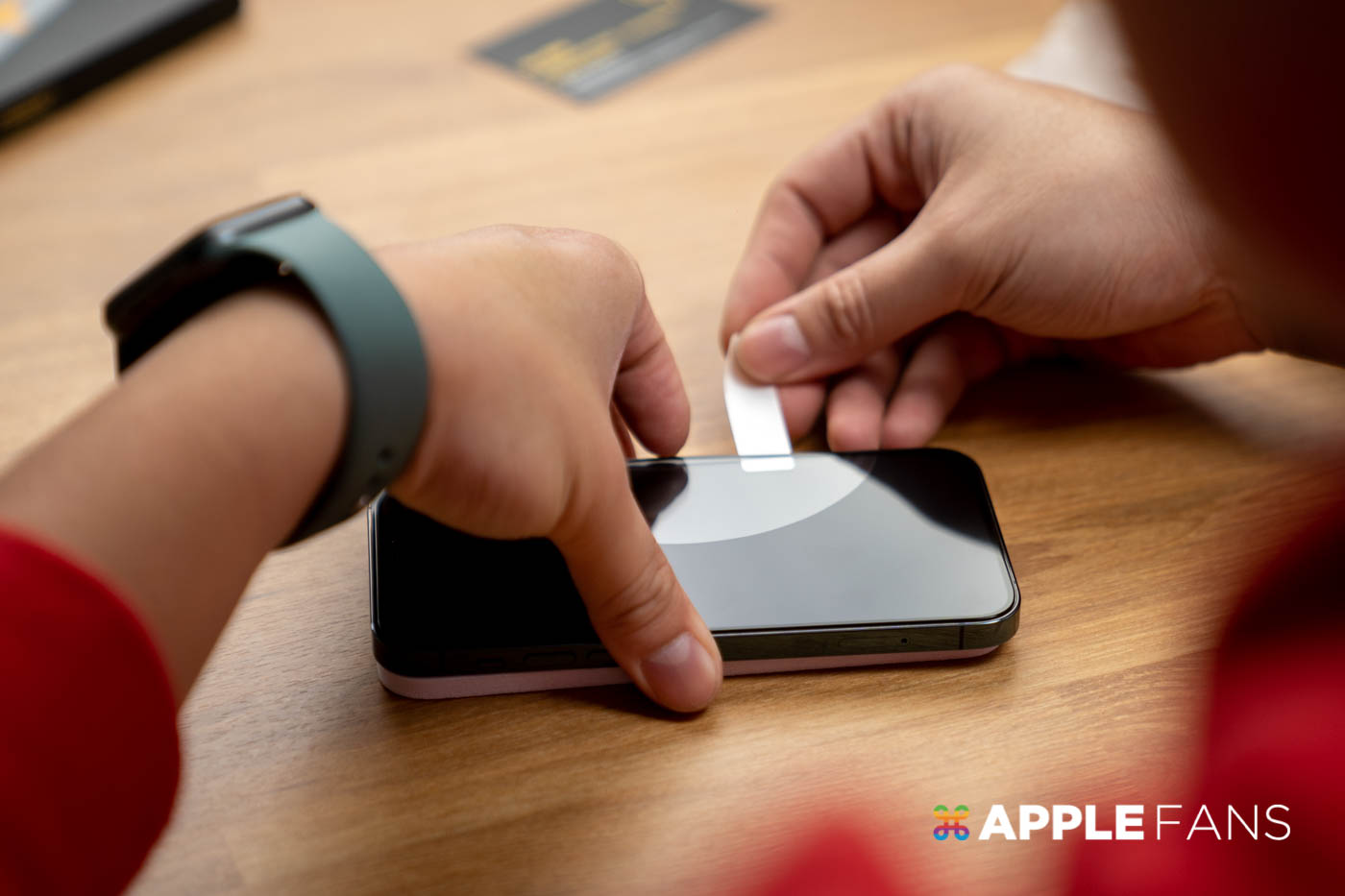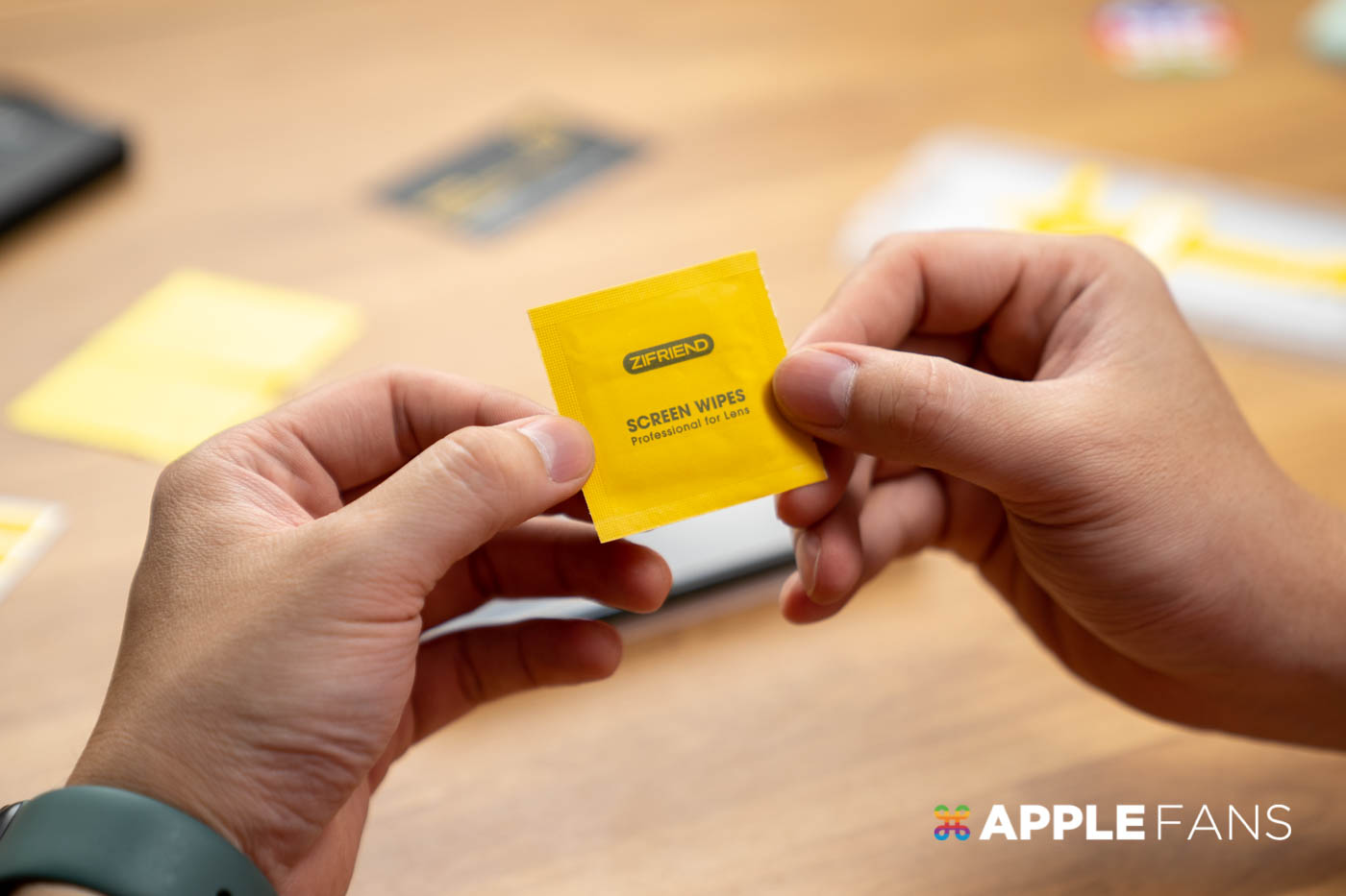 最後將貼好保護貼的 iPhone 用超纖擦拭布清潔乾淨。