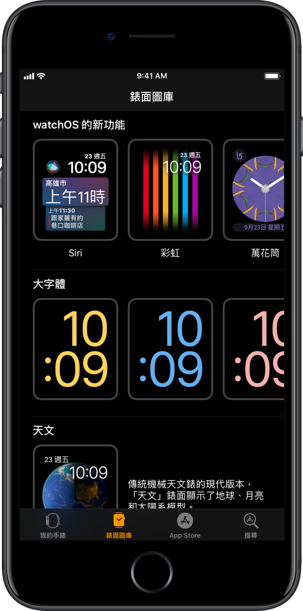 退出設定後,進到 Watch App 當中的「錶面圖庫」欄位,你就能夠看到這款新錶面在圖庫中了。