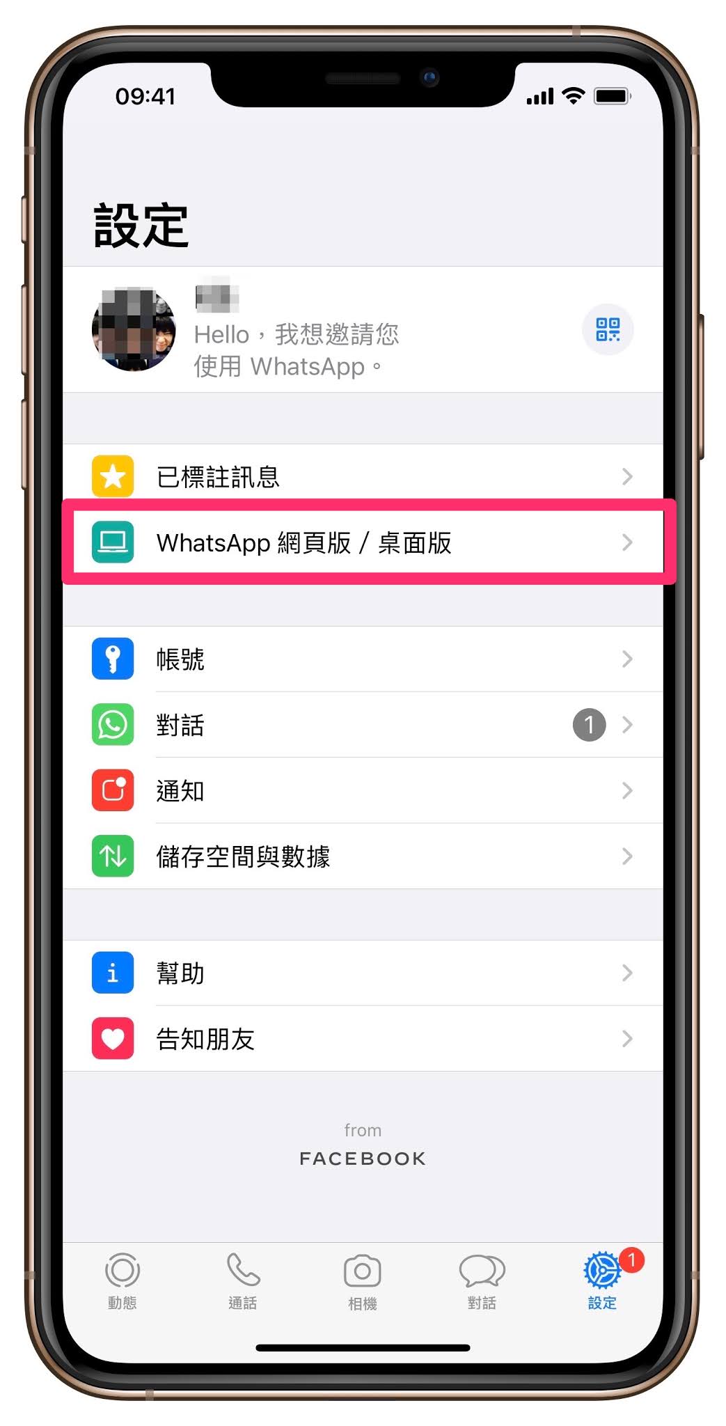 打開自己手機裡的 WhatsApp ,選擇「設定」>「WhatsApp 網頁版/桌面版」,就會開啟掃描相機,對著電腦畫面的 QR-Code,就可以認證啟動電腦版的 WhatsApp。這時候,在電腦版裡選擇任一聯絡人時,就可以看到在對話框裡出現語音和視訊通話的功能鍵了。