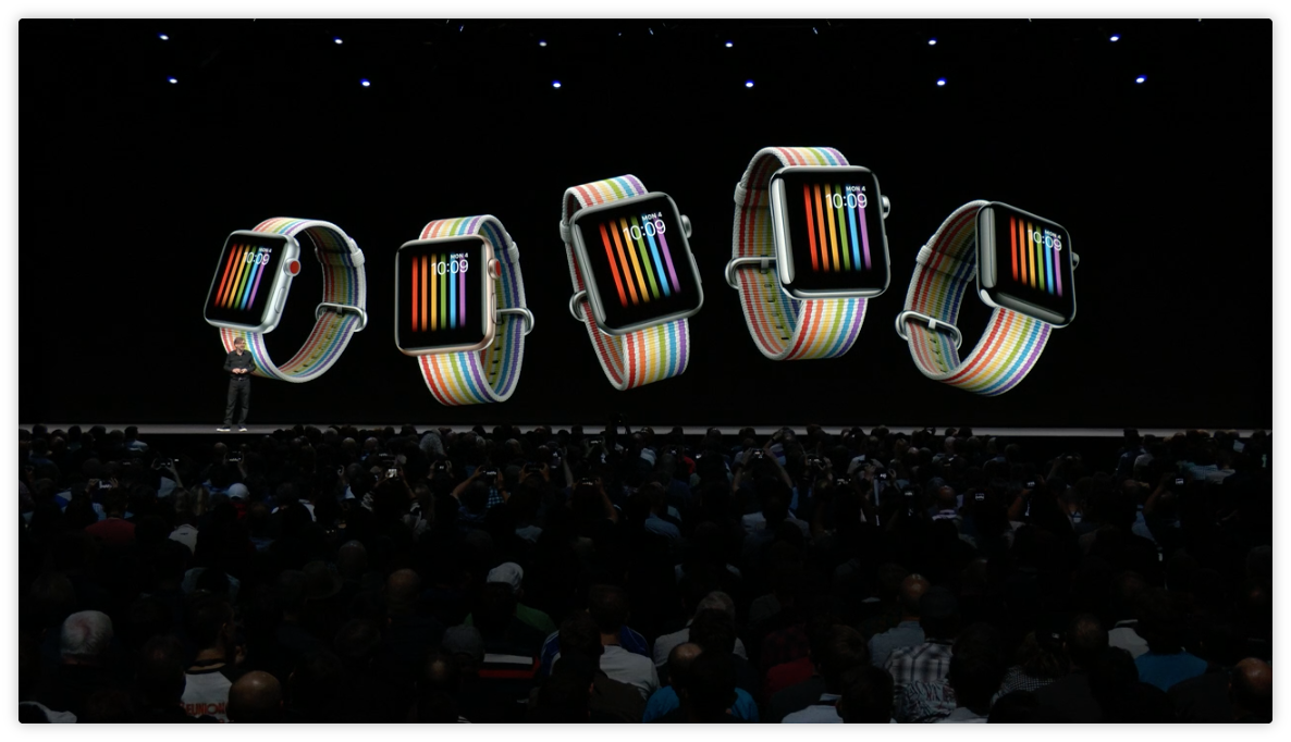 本次 WWDC 推出的唯一硬體,就是這個 Apple Watch Pride 錶帶,搭配之前就流出的彩虹錶面,超級好看。