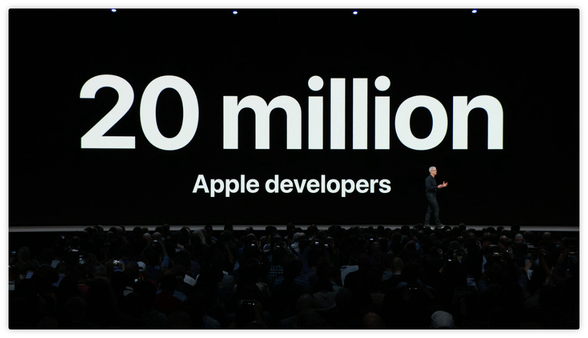 在開始主題之前,Apple 執行長 Tim Cook 照例上台吹噓了一翻,表示 Apple 的開發者們已經達到了二千萬人次。