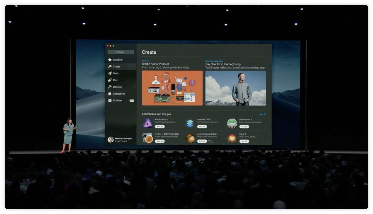 新的 App Store 把原本在上方的分頁欄位改至左側,對 App 的分類也進行了重新整理,整體感覺跟 iOS 上的 App Store 更像了,看起來也更簡單明瞭。