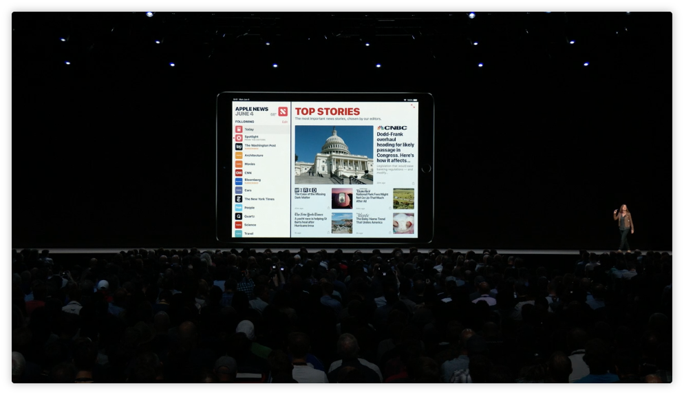 iPad 上的 News app 也新增了側邊欄。
