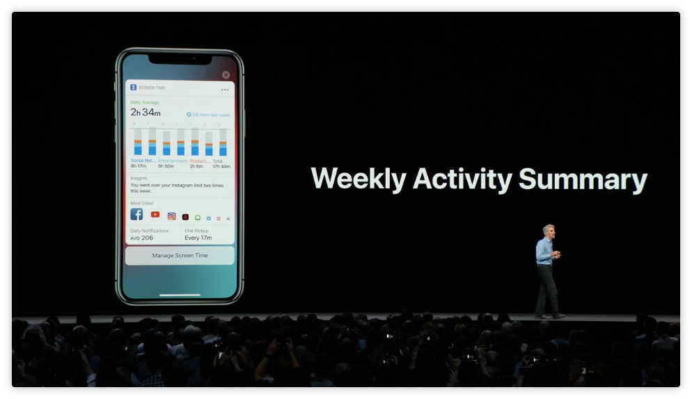 Reports(App報告)是以每週報告的方式,告訴用戶用了什麼 App 最多、拿起 iPhone 第一個打開的是什麼 App,還有哪個 App 的通知最多。