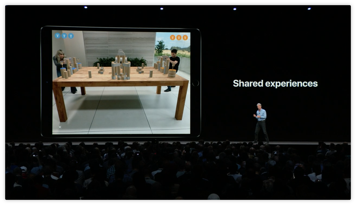 這次 iOS 12 的 AR 增加了分享體驗,可以多人共享一個 AR 環境,也就是兩個人可以一起玩同一個 AR 遊戲了。