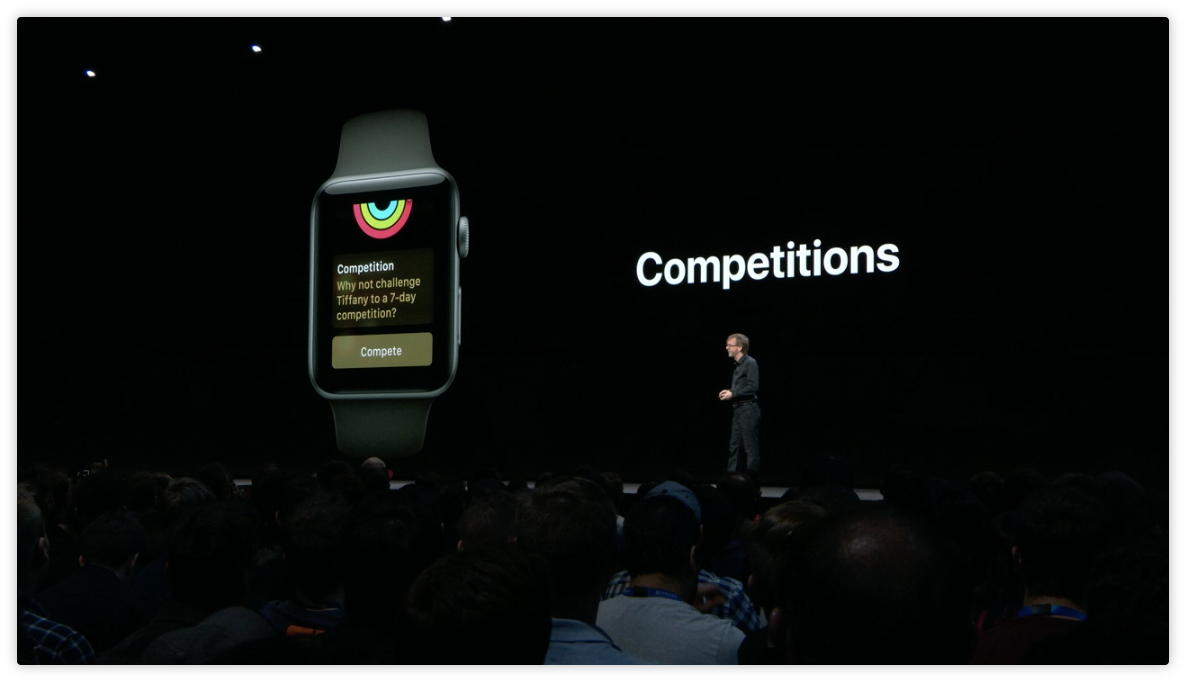 watchOS 5 加入了更多的挑戰功能,可以跟邀請朋友一起完成為期 7 天的挑戰,並且會根據進度收到通知,贏得比賽當然也會通知。