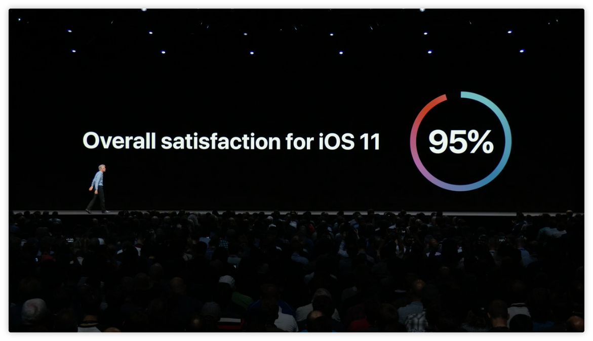 而升級至 iOS 11 的使用者,有 95% 的滿意度…