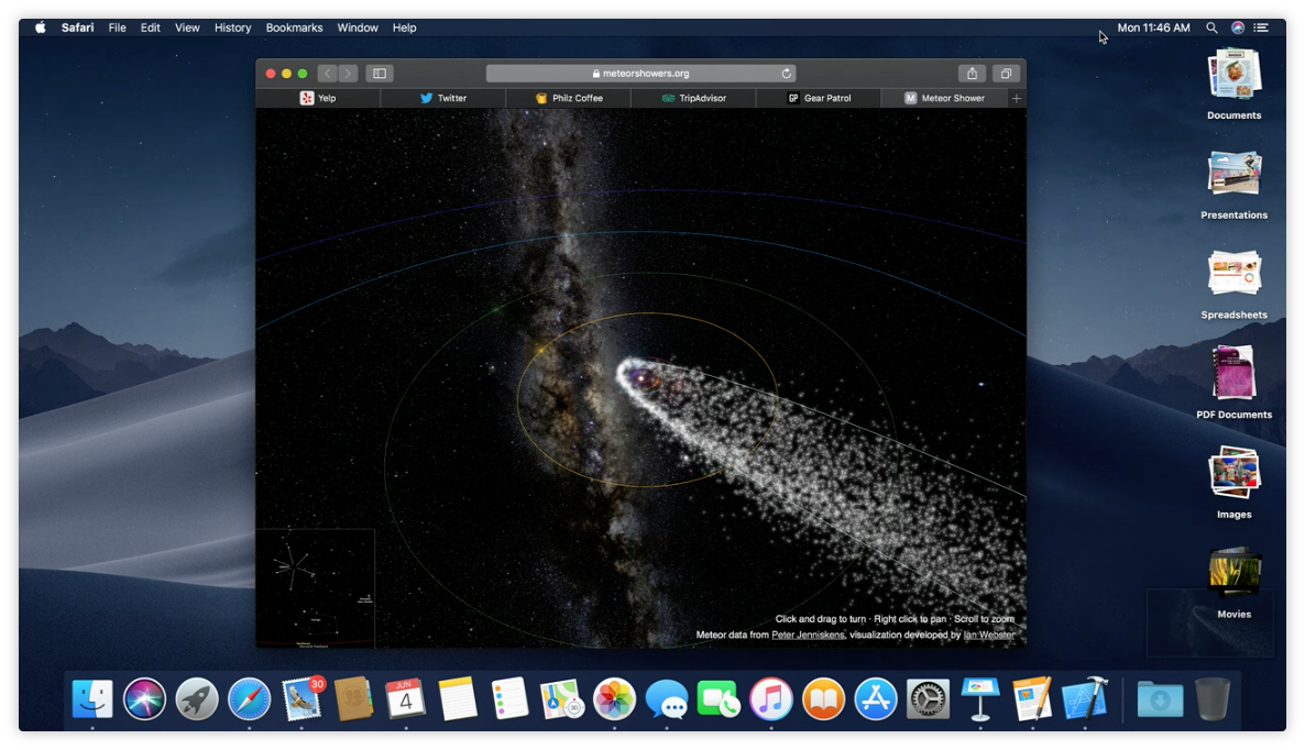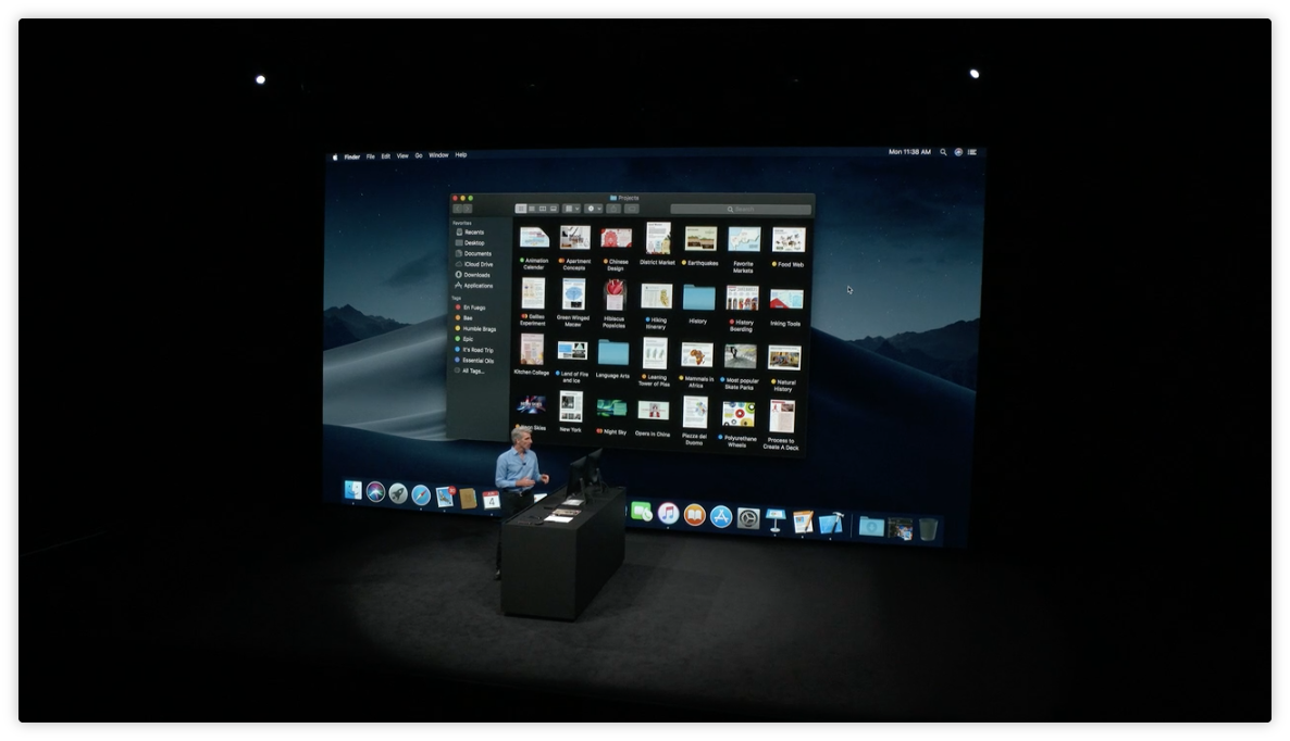 Mojave 也新增了桌面整理功能,可以讓桌面上凌亂的檔案,依照日期、類型、Tag…等進行分類,自動收納成一疊一疊,非常方便。