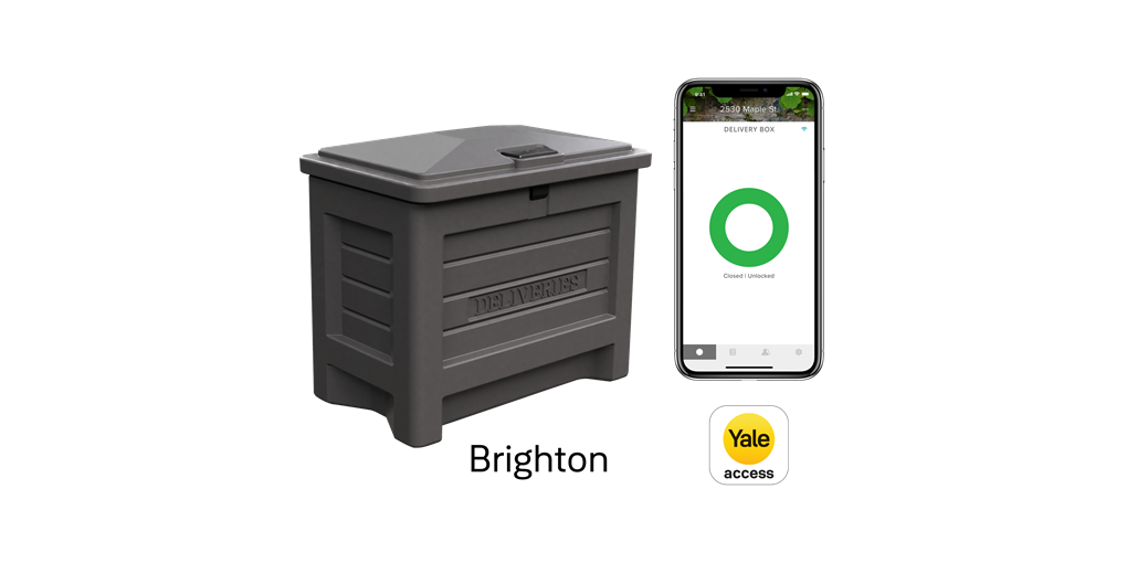 Yale Delivery box ,有兩種不同的設計/顏色,灰色是 Kent Model,而棕色是 Brighton Model。 兩個箱子都使用藍牙連接,而如果你是使用Yale Connect Bluetooth to Wifi 網關,則可用 WiFi 控制鎖,也是連接 HomeKit 所必需的設備。
